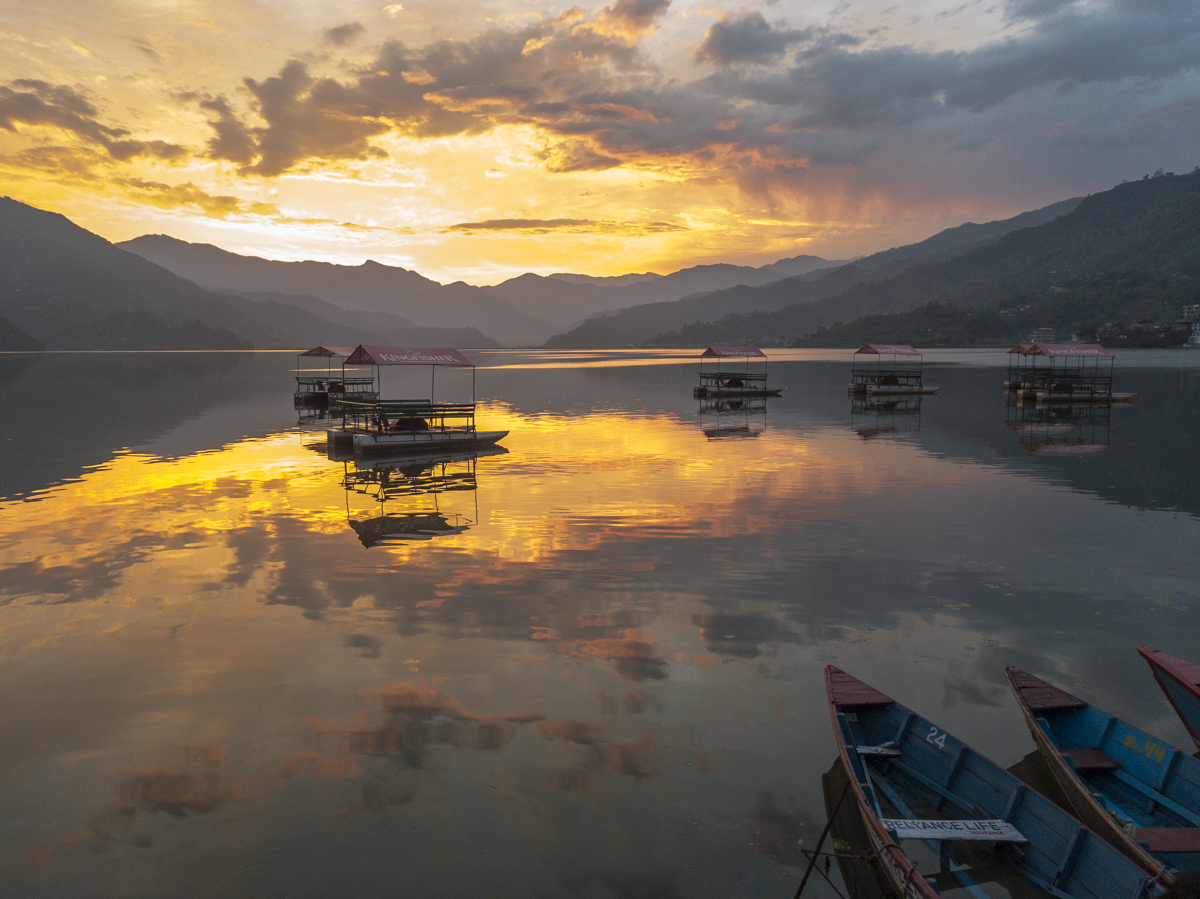 Sunset over Lake Phewa in Pokhara