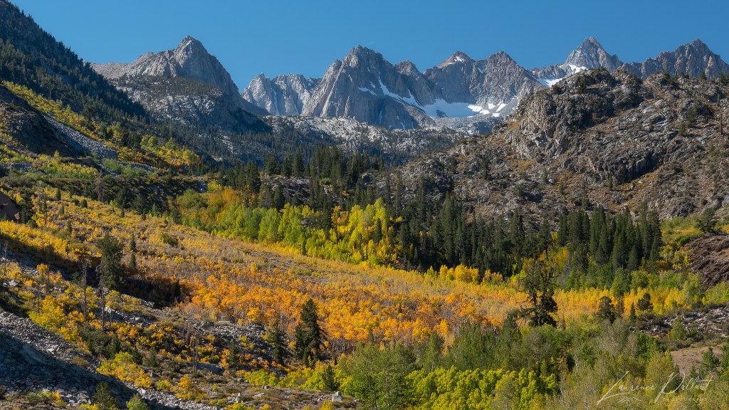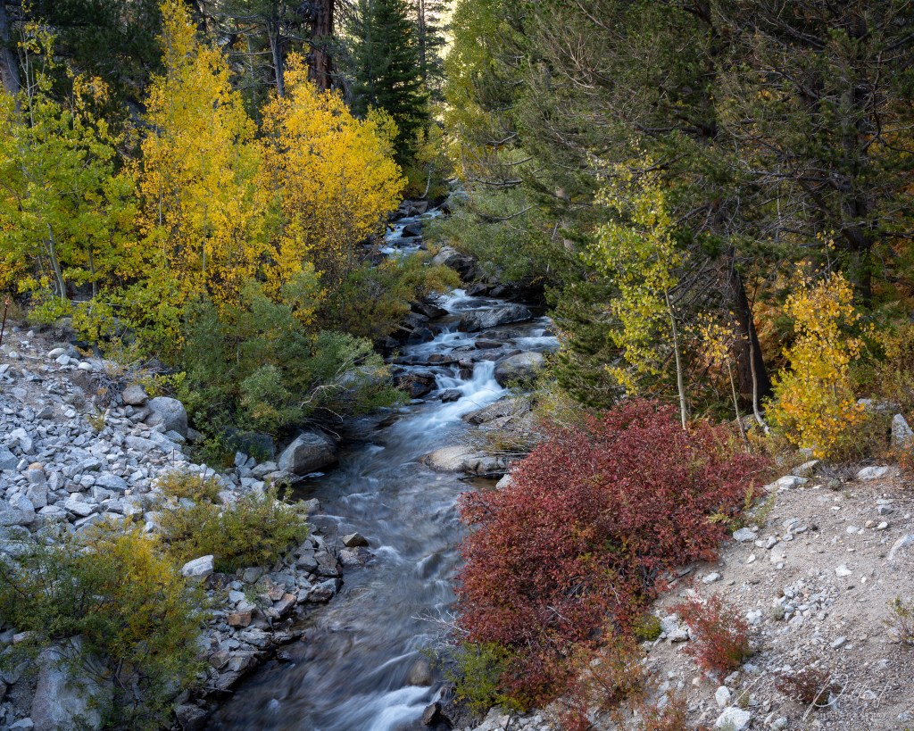 In early October I ventured along the eastern Sierra Mountains for a few days in search of things to point my camera at. The eastern Sierra during fall is very active with photographers from all over the state and some from other states. It was interesting to pull over on the road where there was no one. Within seconds, others often pulled over at the same spot. You can follow the changing conditions each year on this California Fall Color Map.
