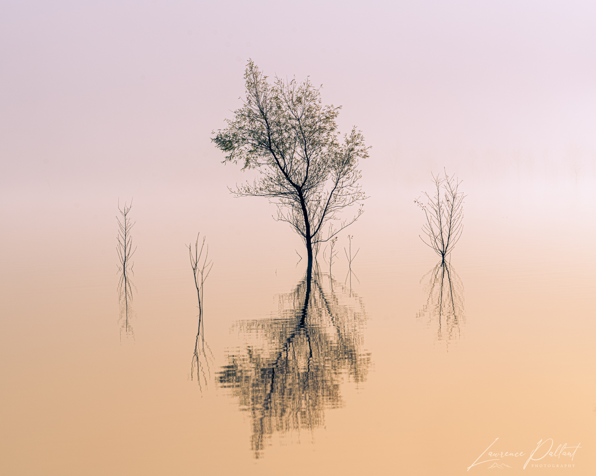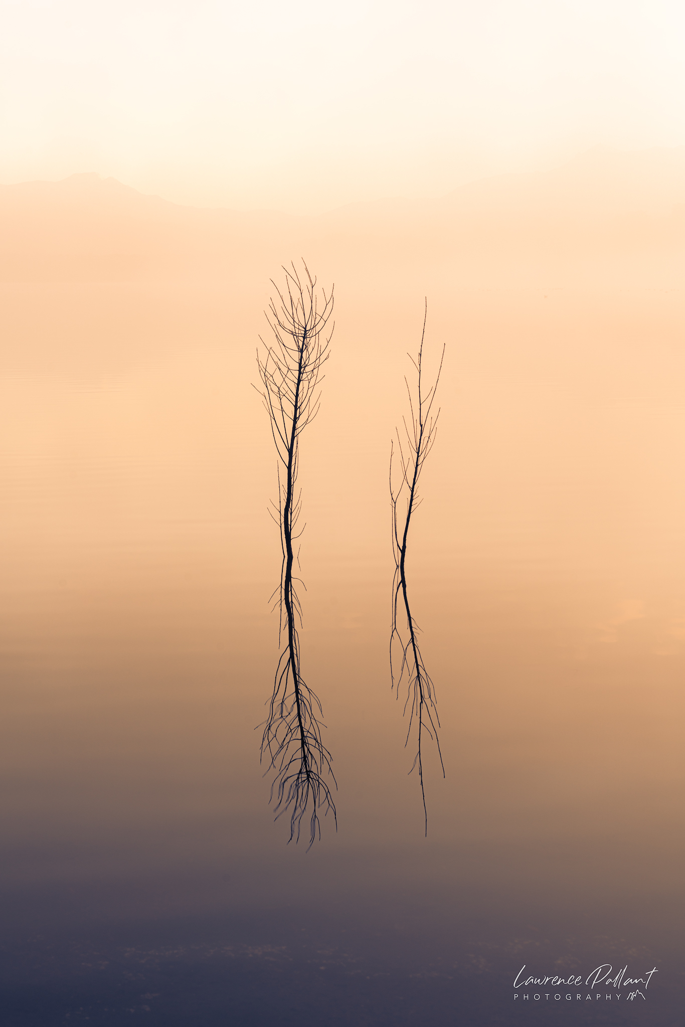 On the way to my second day at snowy Vulcan Mountain Wilderness Preserve, I stopped at Lake Henshaw for sunrise in the mist. These photos turned out to be some of my favorites from this year. I love the simplicity of form and color. The fog makes it possible to obscure the distracting elements from a photo.