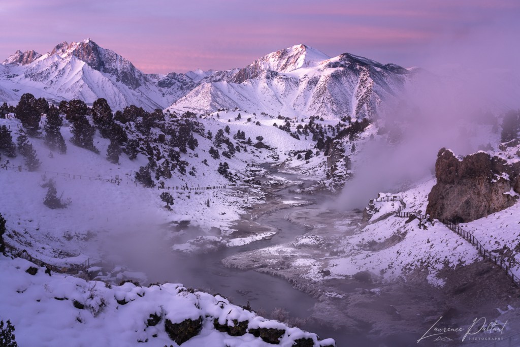 My day began at 5am for the one hour drive to my photo location. On the way, I entered a heavy fog and wondered if I should turn back. I slowed my speed due to poor visibility. As I drove the fog cleared, but rolled in again. I arrived at my location in the snow and light fog about an hour still before sunrise. The sky was just beginning to fill with hints of color filtering though the cool fog. I knew immediately this light was special! Normally we see these beautifully colored clouds in the sky at sunrise or sunset. In this case I was in one of those clouds! It felt like heaven. Except is was 5 degrees F.