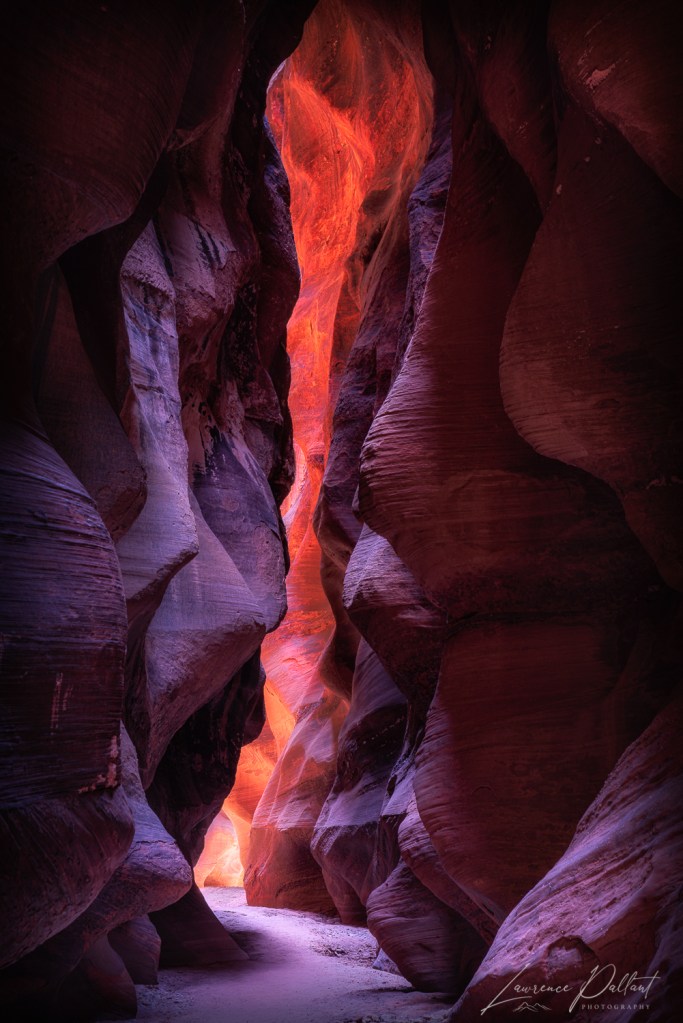 I visited one of my favorite slot canyons. I knew the colors could be beautiful in a slot canyon as light reflects off the walls, but I learned how fickle these fleeting moments can be as I spent the day hiking and observing. I watched as shafts of light trickled down one column of rock, seeming to light it on fire, only to fade away as the sun shifted above.