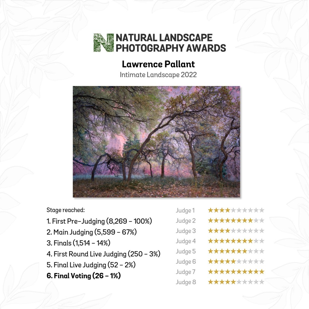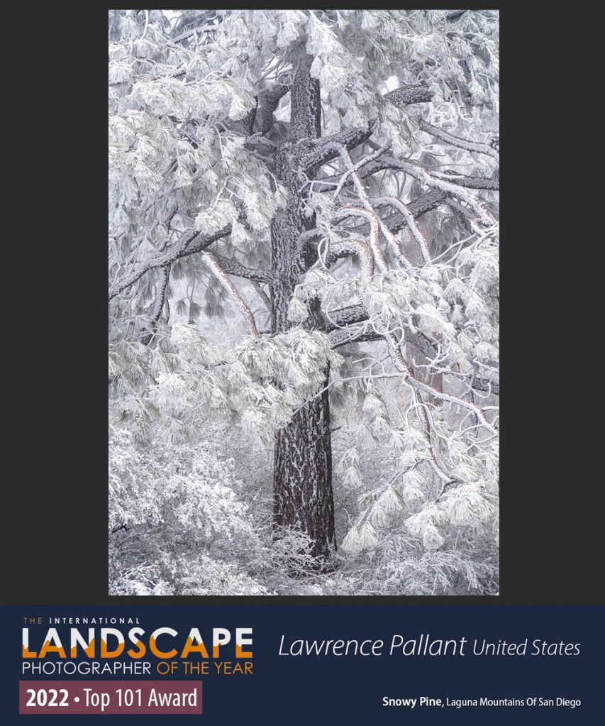 Another one of my photos did very well in a different contest, the International Landscape Photographer of the Year, The photo titled “Snowy Pines” scored in the top 101 and will be printed in their 2022 competition book. You can view an online version of the book here. Scroll to the bottom of the webpage to view the book. My photo is on page 93.