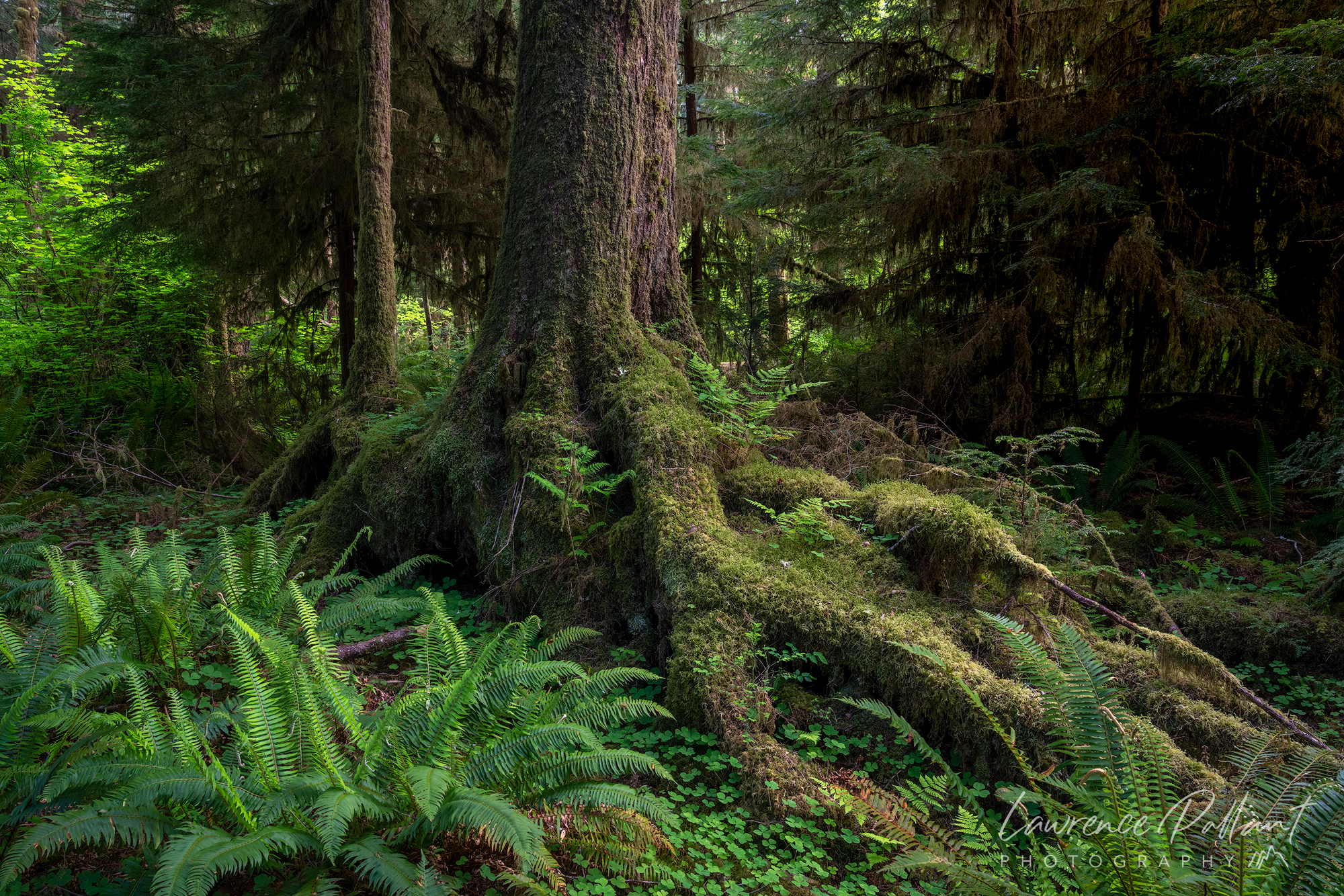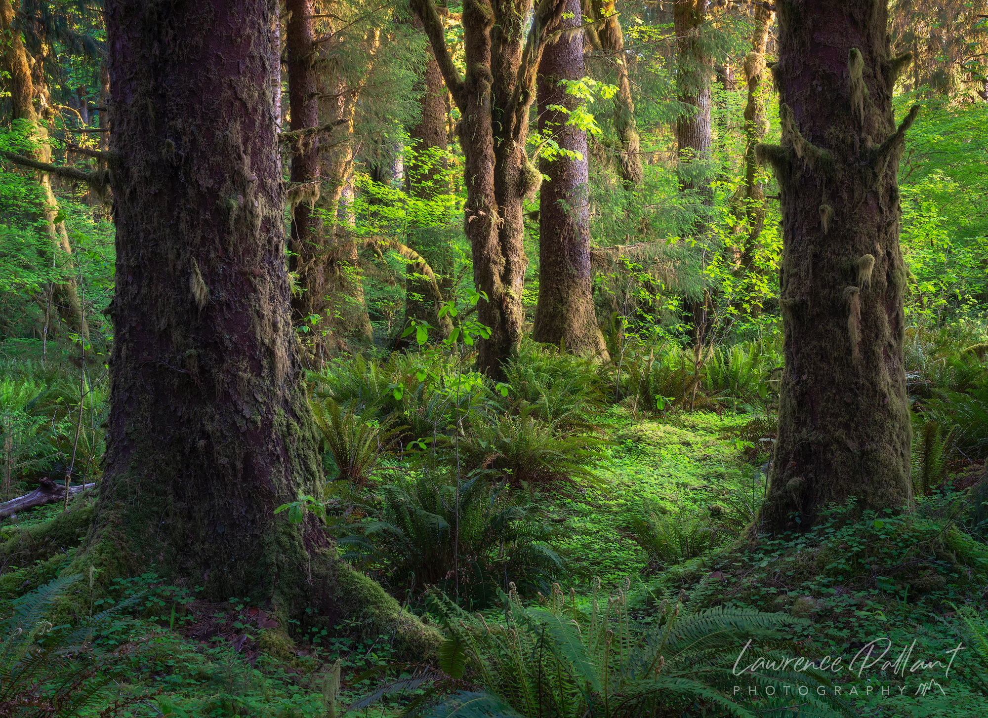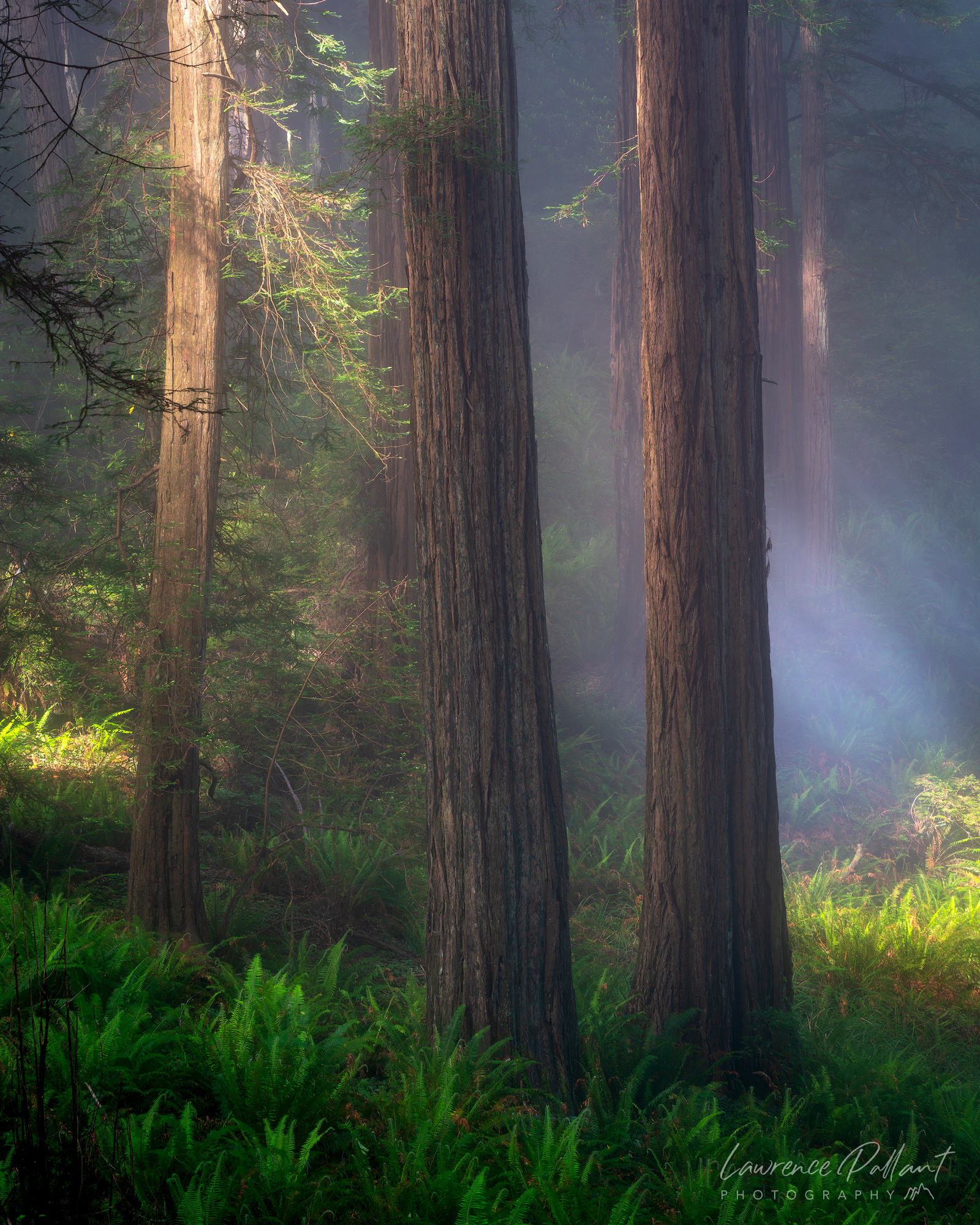 “In a stunning example of complex composition, Lawrence has recognized the potential of the scene and found the perfect position that allows all of its elements to play a part in a coherent, if complex, whole. The two key trees in the center lean over the central smaller tree as if in a dance. The two smaller trees on the left bow in their presence. All of this would still appear off balance if it weren’t for the reaching arms of the maple on the far left. Even the right side is ‘closed’ nicely by the spiraling trunk of the last tree. And we haven’t even mentioned that glorious color of sandstone, desert varnish and maple. A textbook example of resolving complexity.”