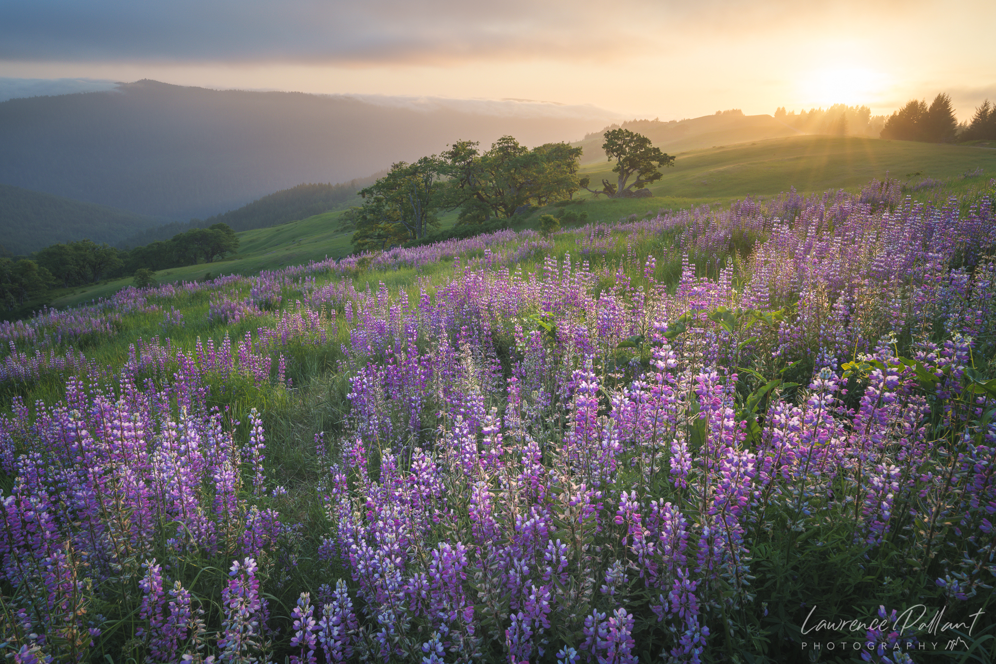 Before leaving the northern coastal redwoods, I drove up into the hills above the redwoods. What a treat! I loved the fields of Lupine and the twisted oak trees in the meadows. From what I hear, this year’s lupine bloom was not spectacular, but it was still beautiful. As I captured the shot below, the coastal fog was quickly moving in.