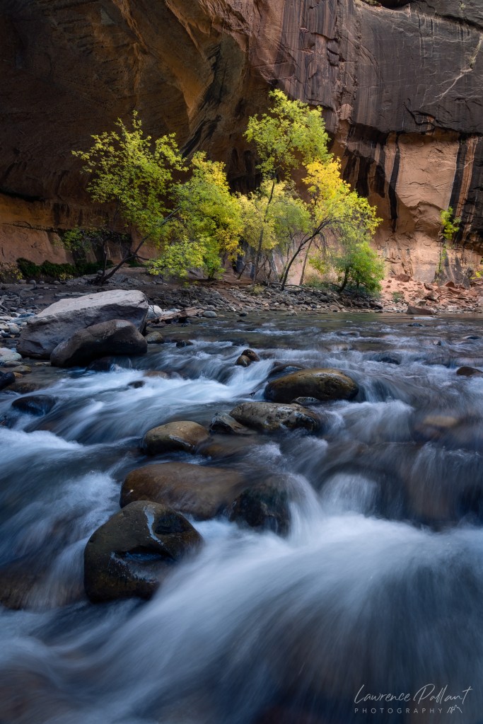 Of course, the Narrows are very popular, and there were lots of people passing through my scene. It was nearly impossible to find a moment with no one in the shot. But I didn’t mind since I knew I could take multiple shots and blend the shots to remove the people. I also worked with long exposures where moving people don’t show in the photo. As long as people were moving I was good. Two people were particularly kind to look at me cautiously when they stepped into my scene. I signaled for them to go ahead, not knowing they planned to sit down and eat lunch …without moving. Eventually they moved on and I got the shot.