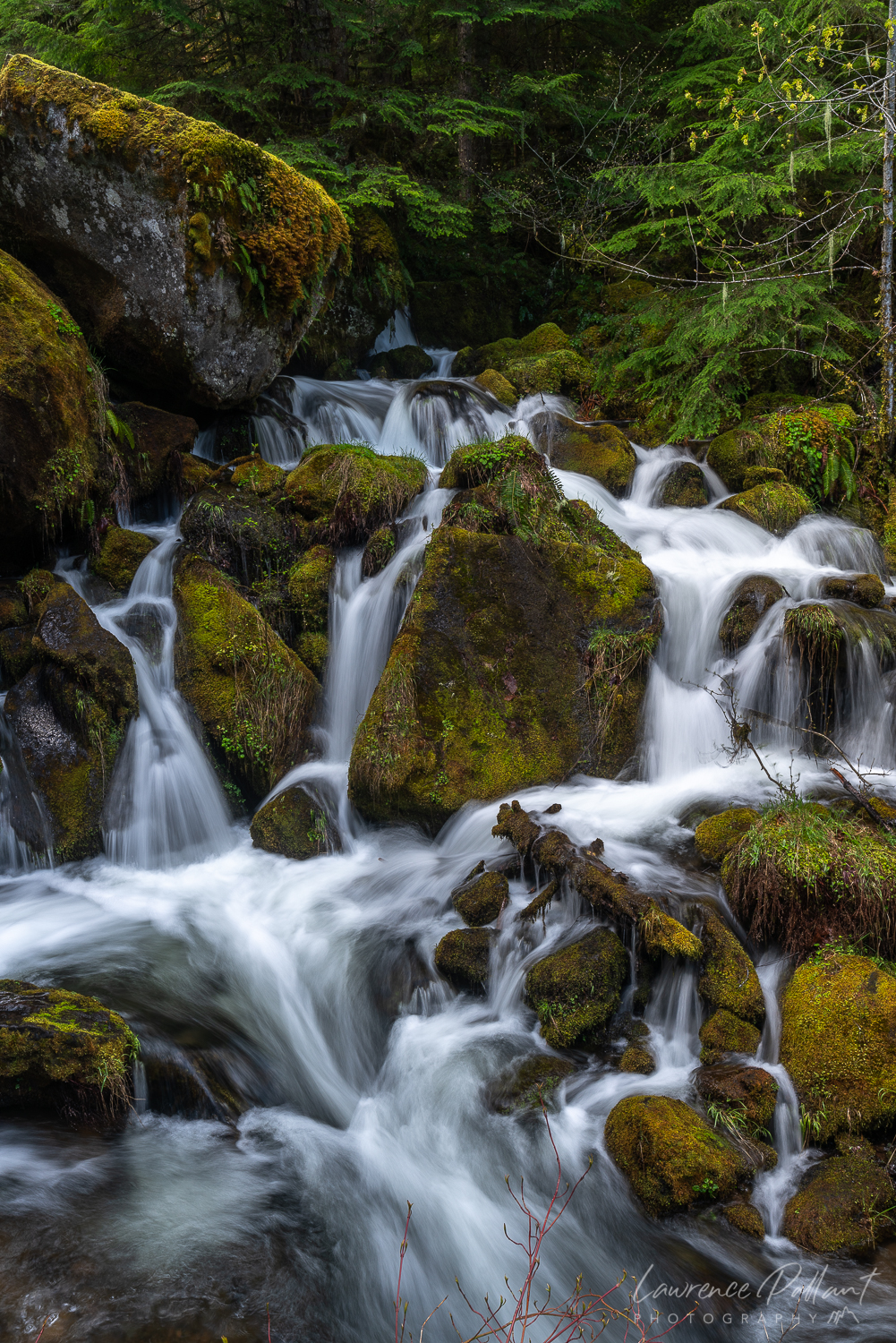 Emerging from the Canyon 32mm, 1 sec at f/10, ISO 100 The challenge of finding a great composition at this waterfall was being constrained to the viewing platform. I would have liked to climb down the steep embankment to the bottom of the canyon, but a ranger had previously told me that area is off limits. Whitehorse Falls 35mm, 2 sec at f/16, ISO 100Clearwater Falls 37 mm, 1.3 sec at f/16, ISO 100 The challenge of these falls was the chaos created by the fallen logs.